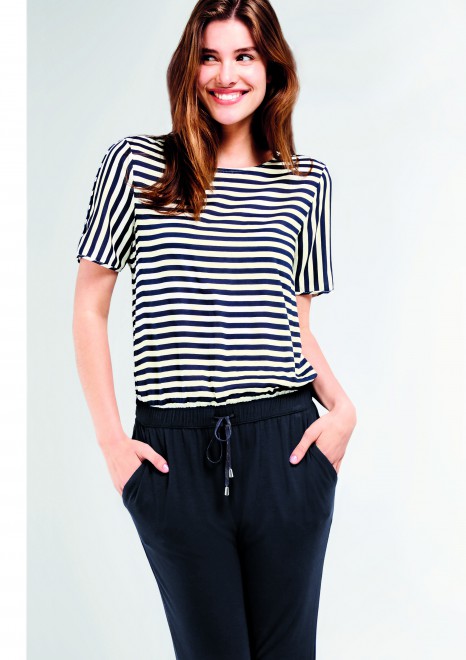 Kolekcija “s.Oliver STRIPE HYPE” je, kot že samo ime pove, črtasta. Modro-bela kombinacija črt nas popelje v prihajajoči čas poletja. Nekoč smo temu rekli mornarski stil. Novost je, da se črte lahko kombinirajo s črtasti. Tako ustvarimo nov, svež videz. Črtaste majice in topi se najlepše kombinirajo s svetlimi ali belimi jeans hlačami.
