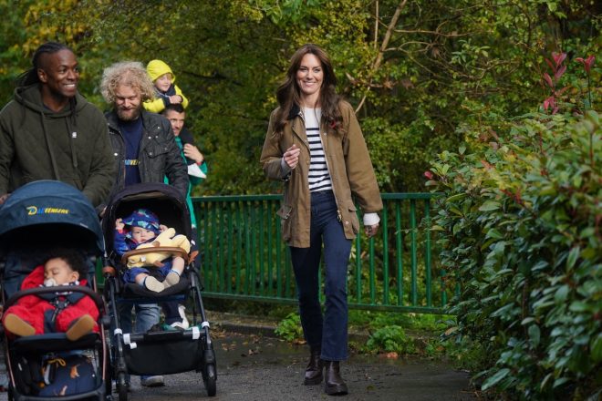 Nad puloverjem je valižanska princesa nosila kaki suknjič, pri obutvi pa je izbrala rjave chelsea gležnjarje znamke Reiss, ki so bili edina novost tokratne izdaje, preostali del princesine oprave pa je bil recikliran. Gležnjarji so narejeni iz gladkega usnja in imajo elastične detajle na gležnjih ter ravne gumijaste podplate, zaradi česar so idealni, udobni model čevljev za to jesen.