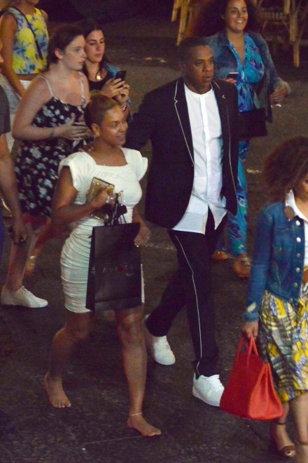 Beyonce je trenutno s svojim možem in hčerkico na počitnicah v Italiji in ko se je družinica včeraj odpravila na večerjo na Capriju, nas je zvezdnica vse presenetila. V ozki beli minici, urejena do potankosti, vendar bosa. Očitno so visoke pete na neki točki preprosto postale preveč boleče in se je sezula. Edino pravilno! Beyonce, me te razumemo!