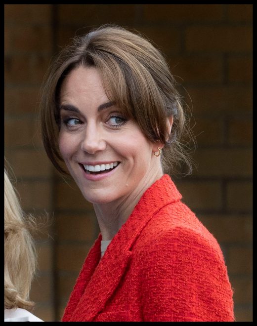 Waleška princesa je pred kratkim naredila drastično spremembo svoje značilne frizure in med svojim zadnjim javnim nastopom razkrila svoj nov, dolg stranski frufru – po angleško imenovan “curtain bangs”. Kate je svojo dramatično preobrazbo pričeske v celoti razkrila med javnim nastopom 27. septembra, ko je obiskala predšolske učence v Sittingbournu v Angliji za svojo kampanjo “Shaping Us” o zgodnjem otroškem razvoju. Za to priložnost si je svoje dolge lase spela v figo, ob obrazu pa ji je padal njen novi frufru. Kate je sicer na dogodku navdušila z živahnim rdeče-oranžnim blazerjem z zlatimi gumbi, bež srajco in mornarsko modrimi hlačami. Kombinirala je z ujemajočimi se balerinkami in majhnimi zlatimi obročkastimi uhani. Čeprav je to prvič, da je Kate predstavila svoj nov frufru, si ga je v resnici postrigla že v začetku tega meseca.